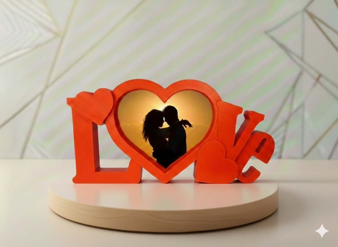See ei ole lihtsalt pildiraam, vaid valgusküllane kodu sinu kõige kallimale mälestusele. Disain, kus sõna “LOVE” sisse on peidetud südamekujuline ava, ümbritseb sinu foto soojuse ja hoolega.